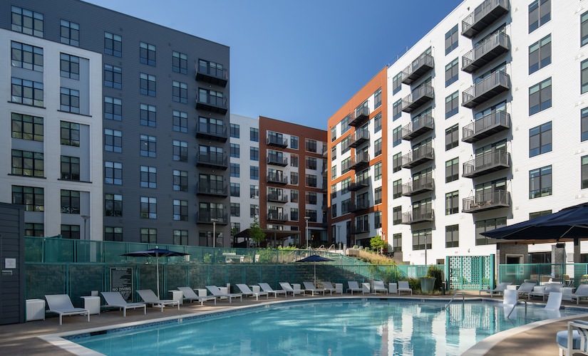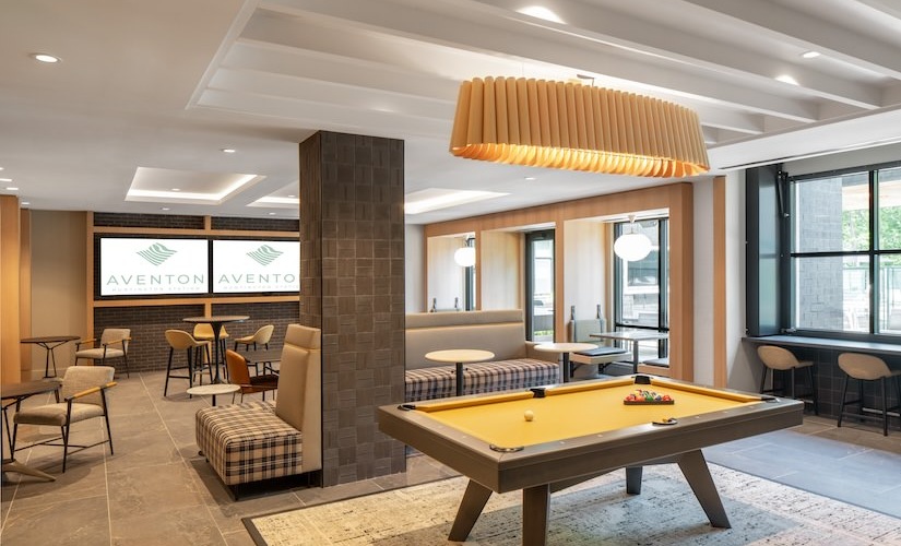 Explore Aspire Huntington Station’s pool courtyard with lounge chairs around our sparkling pool and an al fresco dining pavilion